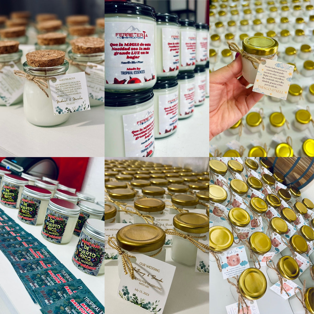 En Tropikal Essences creemos que cada momento especial merece un detalle único. Por eso diseñamos velas personalizadas para tus actividades: desde bodas, baby showers, cumpleaños y gender reveals, hasta eventos corporativos y celebraciones íntimas.
